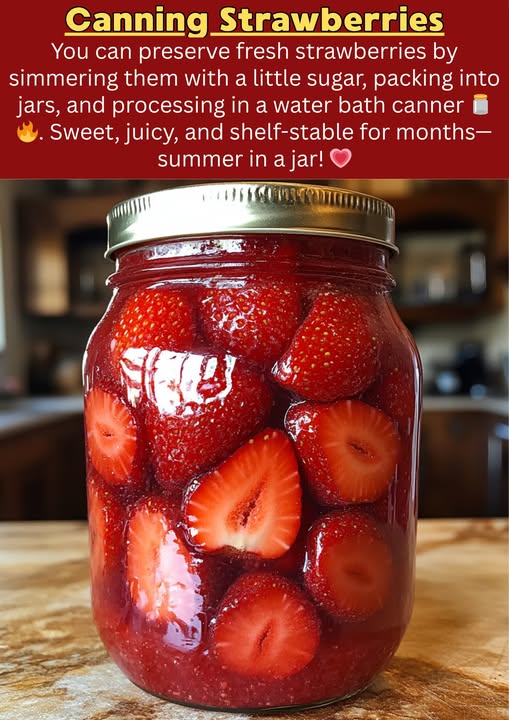 5. Pack strawberries into jars and cover with the juice, leaving 1/2 inch headspace