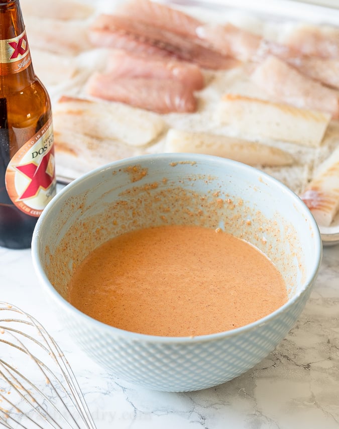 *There’s no need to be concerned with alcohol consumption and this recipe, as the alcohol will get cooked off when the fish is fried in oil.