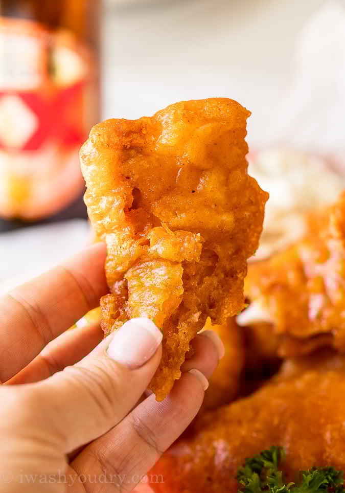 I’ll be honest, I am NOT a drinker, so while I don’t ever have beer in my fridge, that won’t stop me from buying it specifically for this recipe. The beer gives the batter that light airy texture, creating a thin, yet crispy coating that’s totally crave-able.