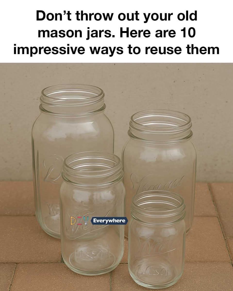 Don’t throw out your old mason jars. Here are 10 impressive ways to reuse them