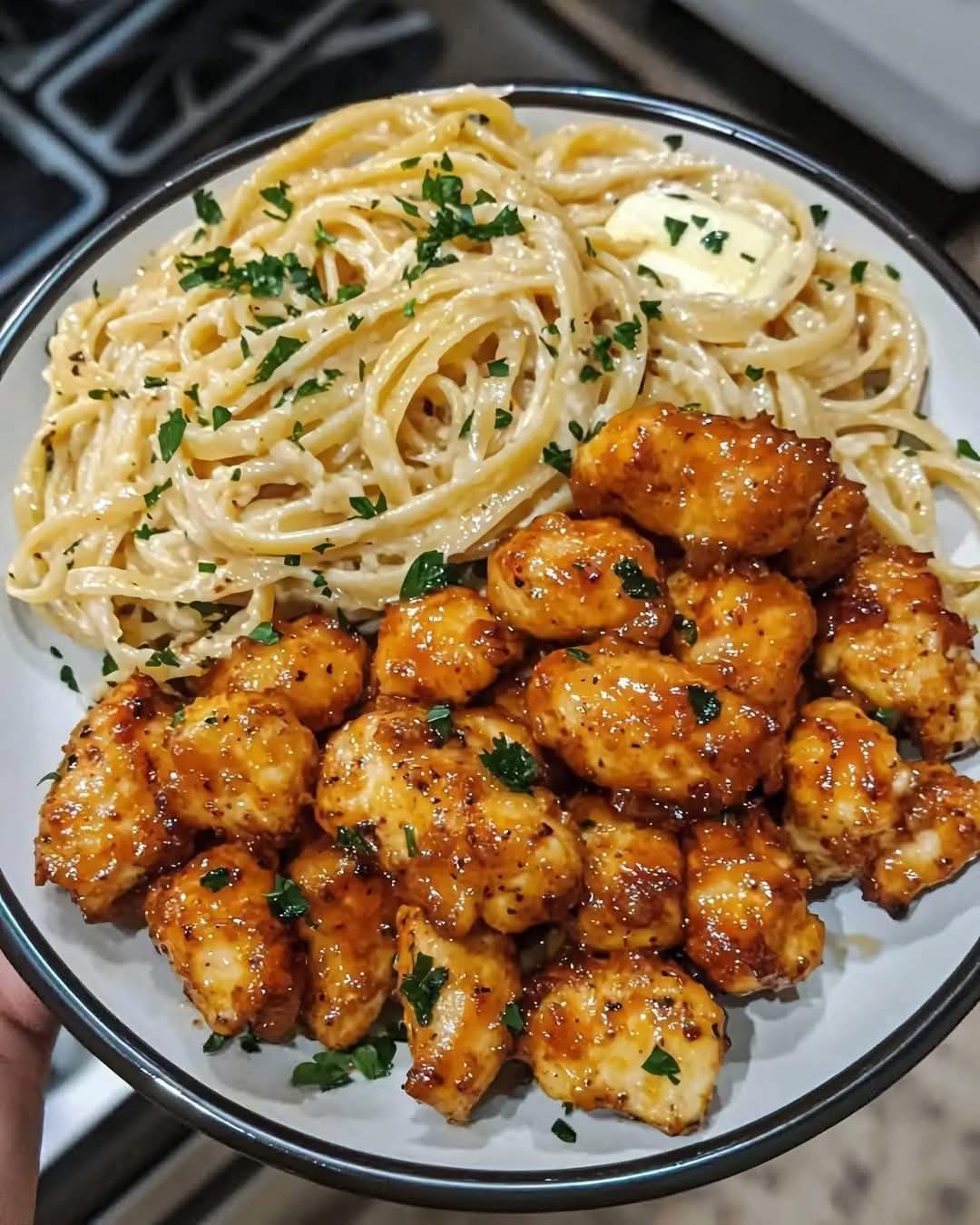 Honey Pepper Chicken with Creamy Garlic Butter Pasta