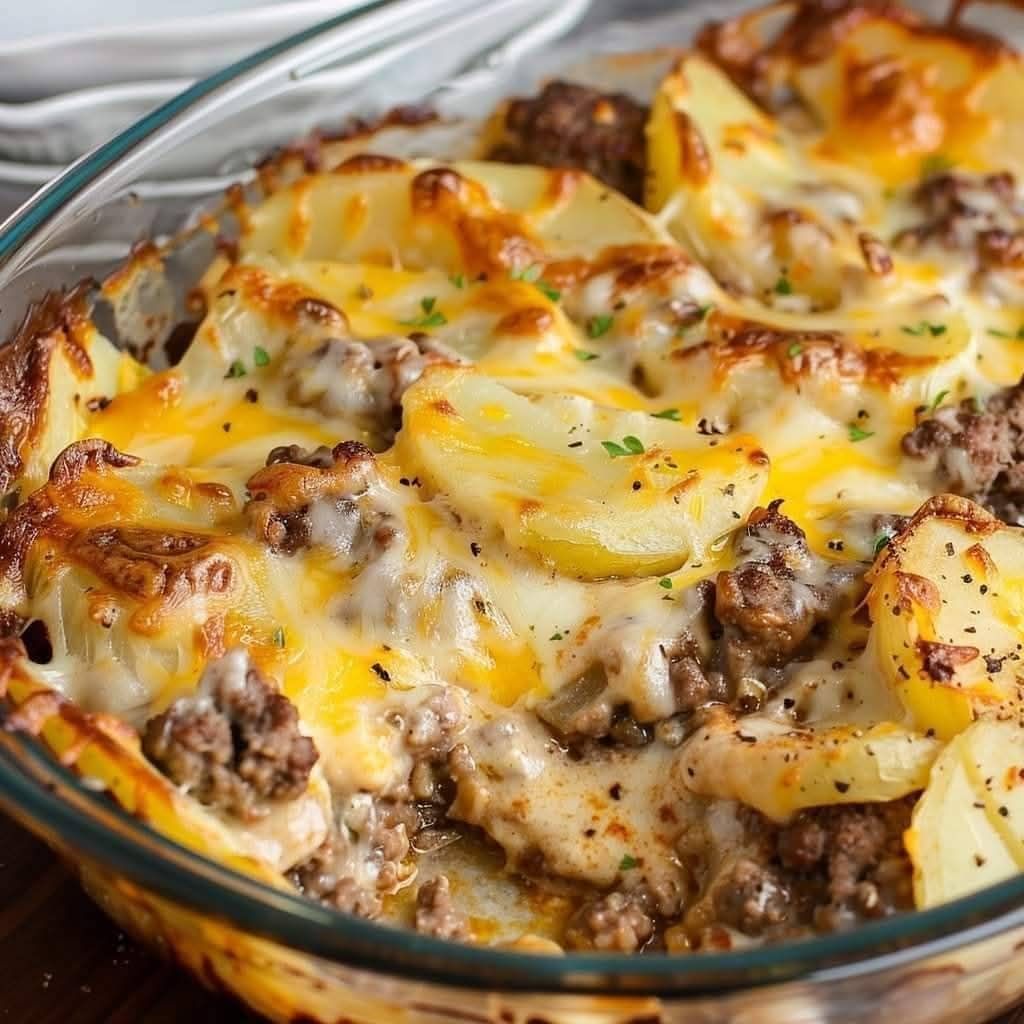 Get everything ready by preheating the oven:The oven should be preheated to 350°F, or 175°C.If you want, you may peel the potatoes and then thinly slice them. Put aside.To Prepare the Ground Beef:The ground beef and onion should be cooked in a pan over medium heat until the meat is browned and the onion is tender. Remove any surplus of fat.Add salt and pepper according to your preference.The ezoicGet the Creamy Sauce Started:Whip the sour cream, milk, and condensed soup together in a bowl until smooth.Put the Casserole Together:Split the sliced potatoes in half and arrange them in a greased 9×13 inch baking dish.Coat the potatoes with half of the cooked ground meat.Toss the potatoes and meat with half of the creamy sauce.Pile on top of each other the leftover steak, potatoes, and sauce.Add some shredded cheddar cheese and a pinch of paprika or dry herbs on top, if desired.Put the dish in the prepared oven and bake it for 1 hour, covered with aluminum foil.After 20 to 30 minutes without foil, the potatoes should be soft and the topping should be golden and bubbling.To make serving the casserole simpler, let it cool for a few minutes so it can solidify and slice more easily.Finding your way around this post