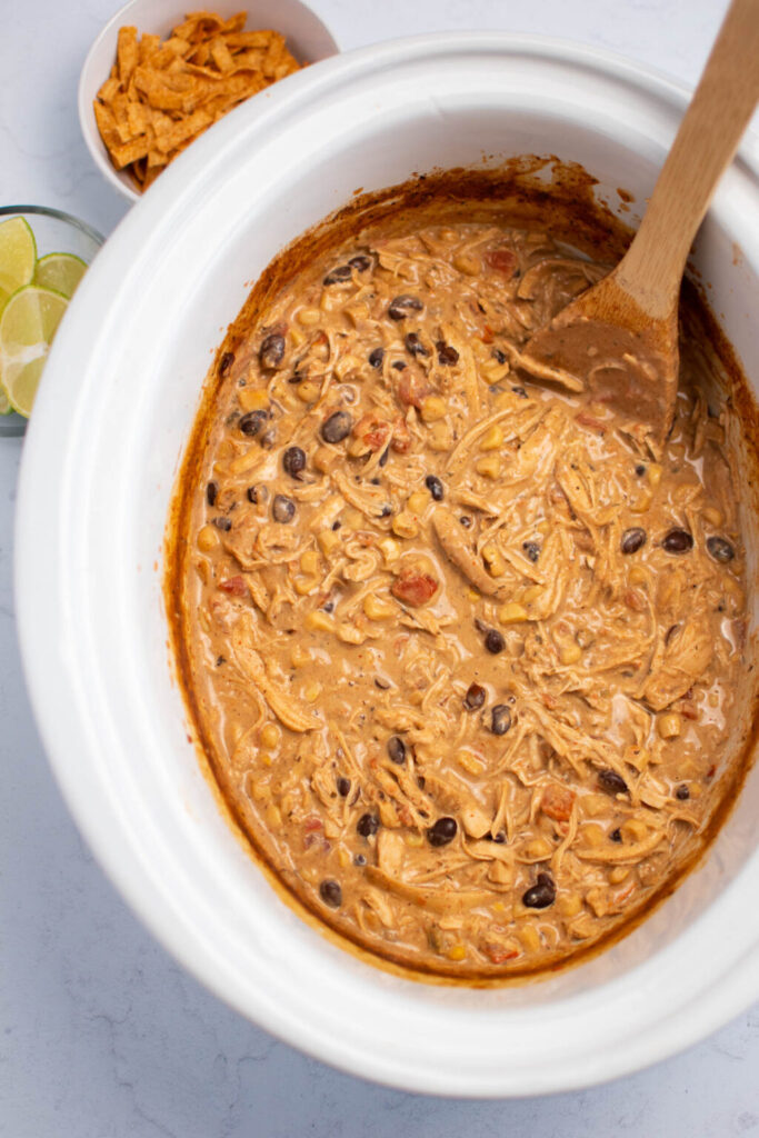 The cook time for this recipe will be a little different based on what type of slow cooker you’re using. Mine is a 7 quart Crock Pot that cooks very fast, so this recipe is usually done in 4-5 hours on low. The cook times listed in this recipe are a suggestion, so you may need to adjust depending on how your slow cooker cooks.
